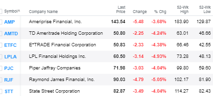 Biggest Losers: BlackRock (- 7.2%), Raymond James (- 5.1%), Chas. Schwab (- 5.0%), LPL Financial (- 4.9%)