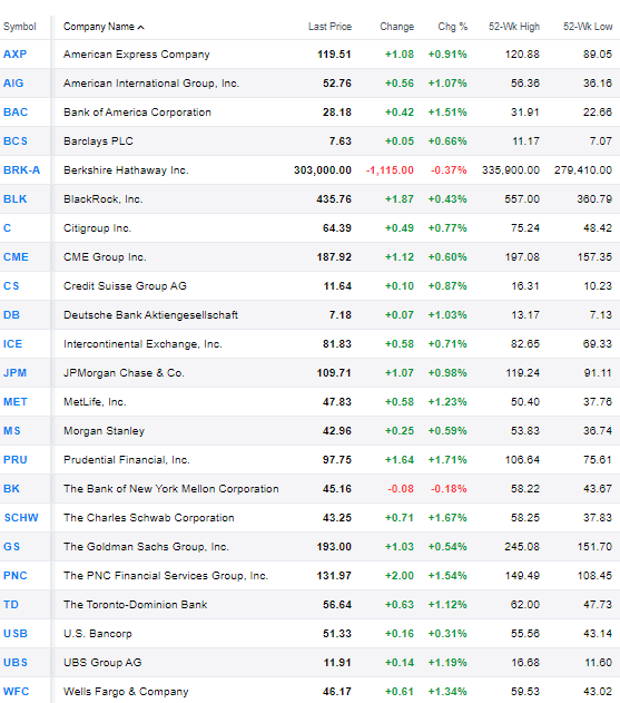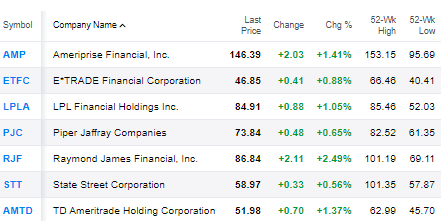 Biggest Winners: Raymond James (+ 2.5%), Prudential, Chas. Schwab (+ 1.7%), PNC Fincl, Bank of America (+ 1.5%)