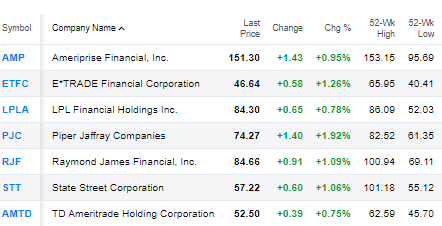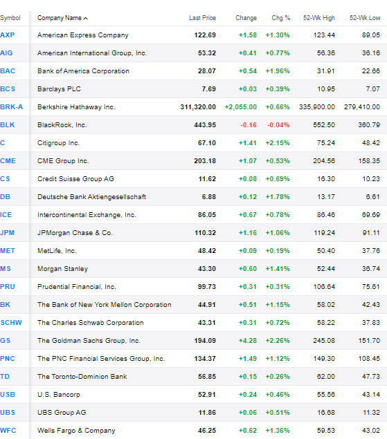 Biggest Winners: Goldman Sachs (+ 2.3%), Citigroup (+ 2.2%), Bk of America (+ 2.0%), Piper Jaffray (+ 1.9%), Deutsche Bk (+ 1.8%)