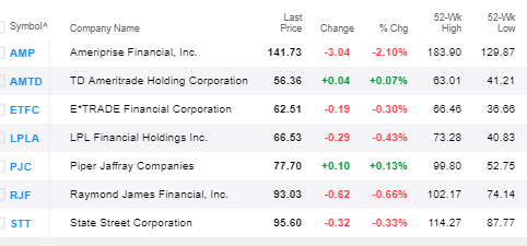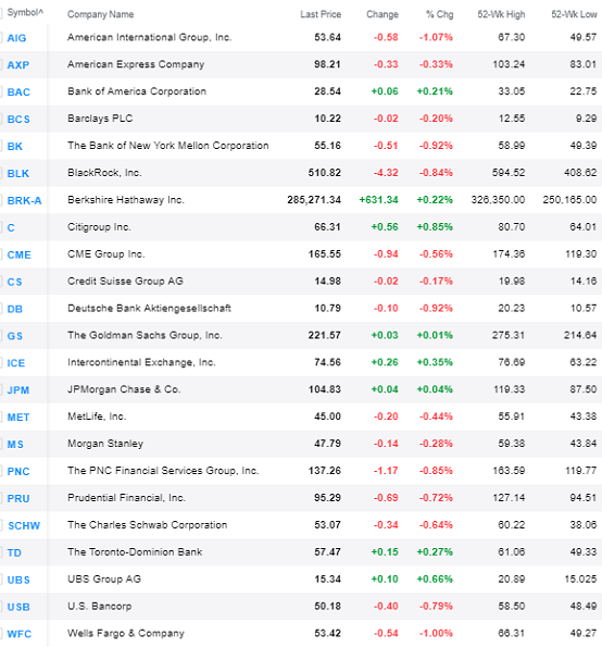 Biggest Losers: Ameriprise (- 2.1%), AIG (- 1.1%), Wells Fargo (- 1.0%), Deutsche Bk, BNY Mellon (- 0.9%)