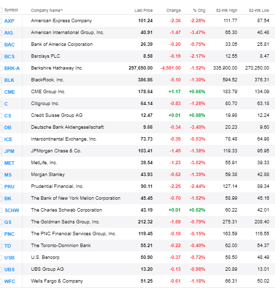 Most Financial Stocks Close Week with Losses (AIG -3.5%, RayJames -3.4%, DB -3.4%) - Oct. 26
